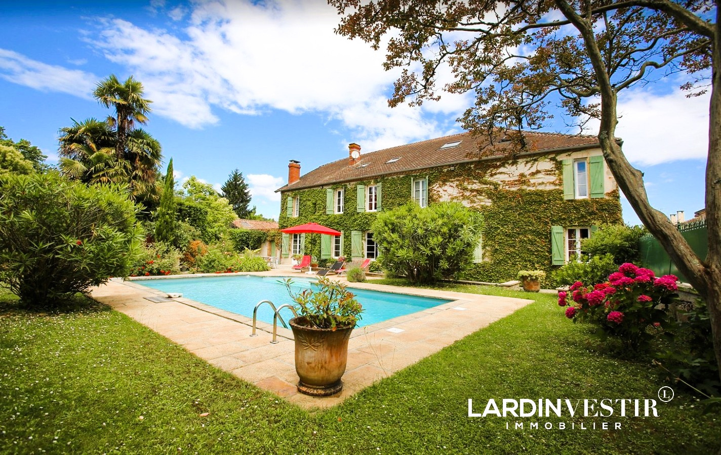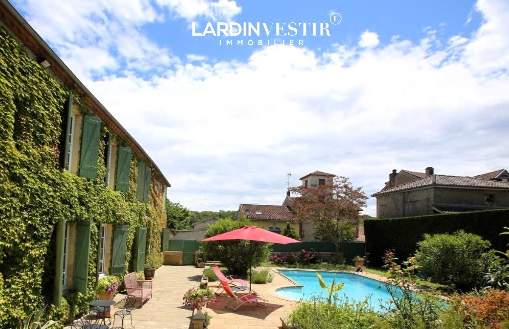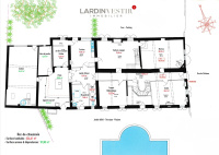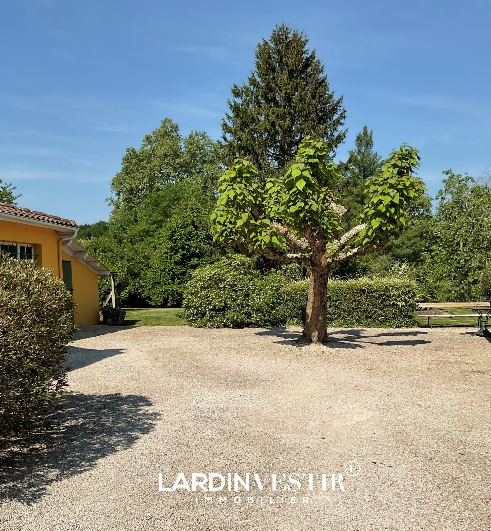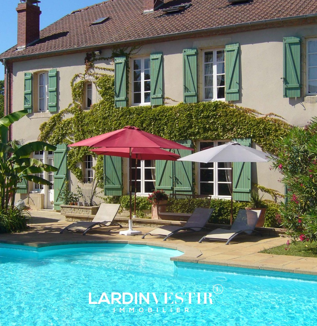 Édifiée sur un terrain de 2 309 m² (avec la possibilité de détacher une parcelle constructible d'environ 1 200 m²), la propriété s’ouvre sur un magnifique jardin arboré, soigneusement entretenu, agrémenté d’une piscine et d’une terrasse, véritable invitation à la détente.
