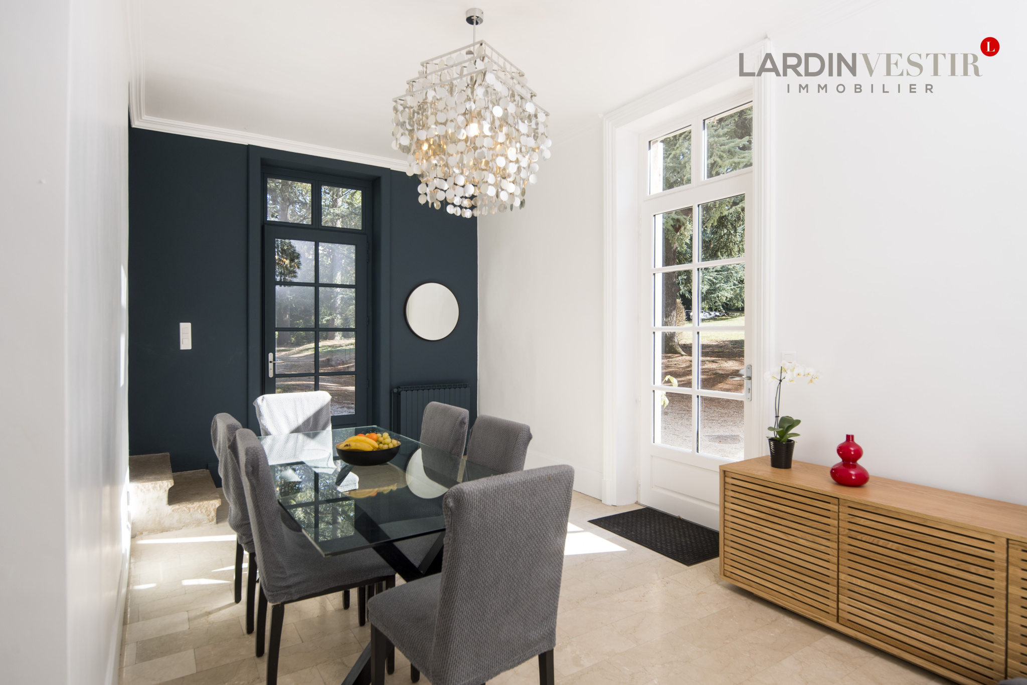 Implantée au sein d’un parc arboré de 3 500 m², soigneusement paysagé et bordé d’arbres centenaires, la propriété bénéficie d’un cadre naturel privilégié, à l’abri des regards, tout en restant à proximité immédiate de Lyon et des axes de communication.